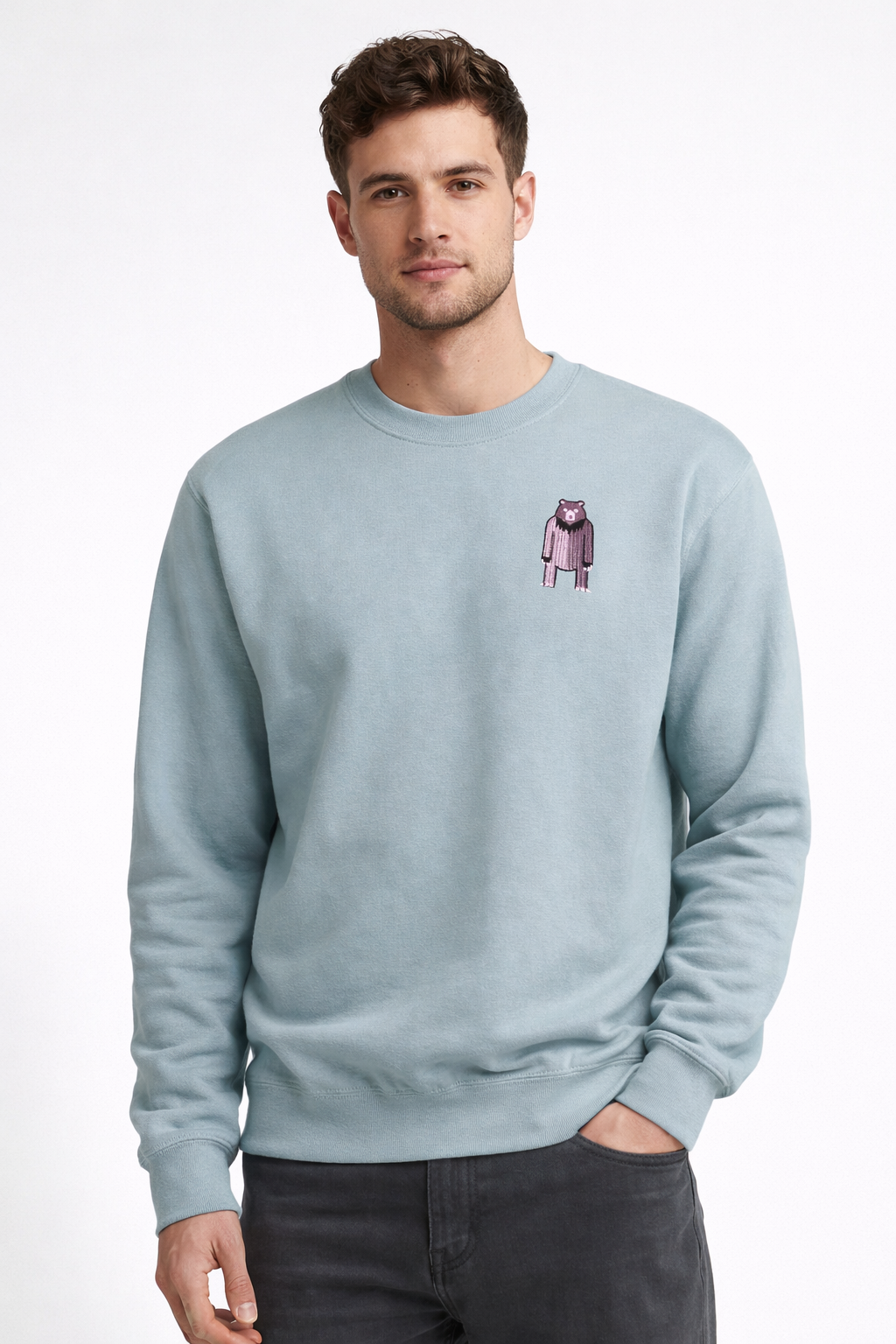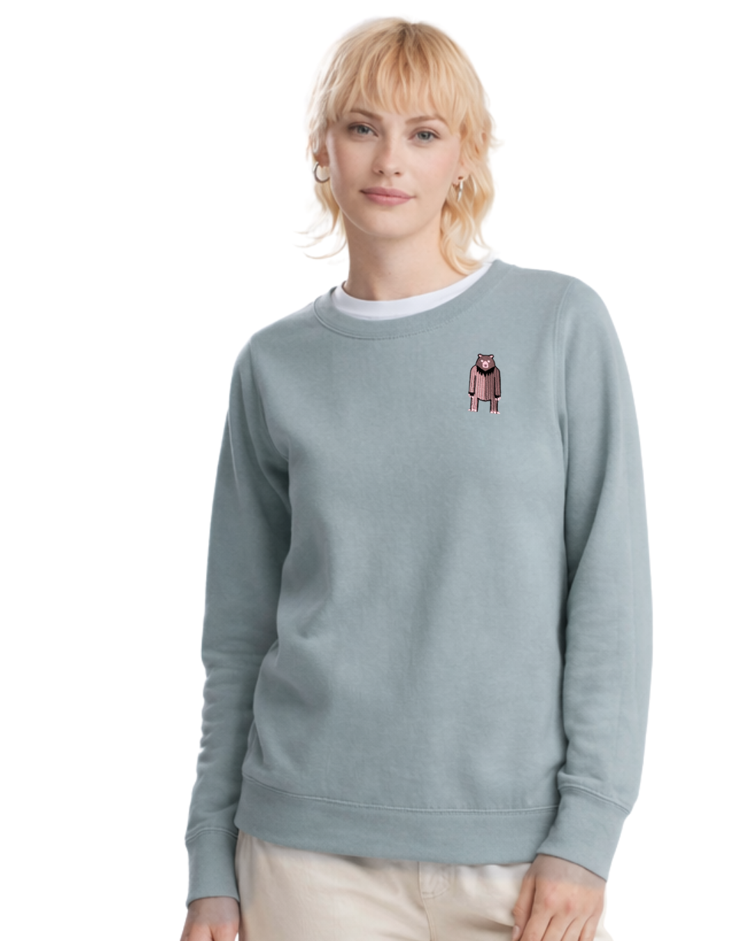 Bluza sweatshirt dusty green z haftem (Niedźwiedź)