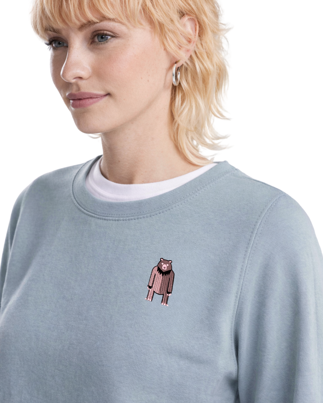 Bluza typu longsleeve z minimalistycznym haftem niedźwiedzia na piersi. To detal, który nie krzyczy, ale buduje klimat, spokojny, niezależny, dziki. Idealnie wpisuje się w estetykę Tatr i slow fashion.